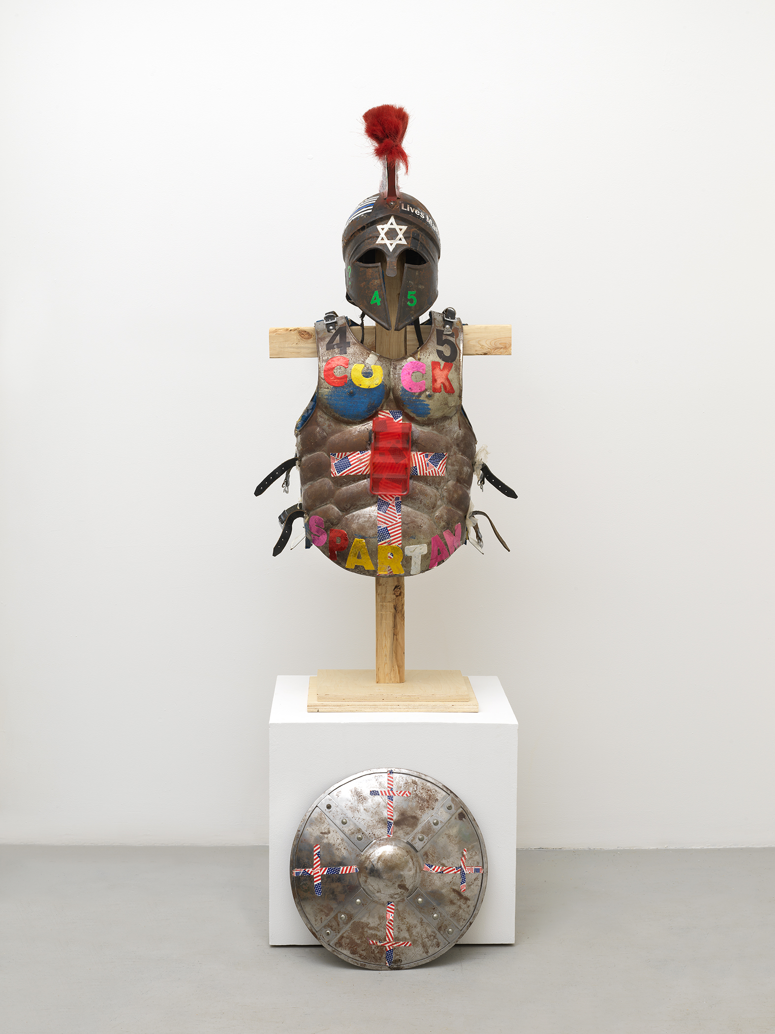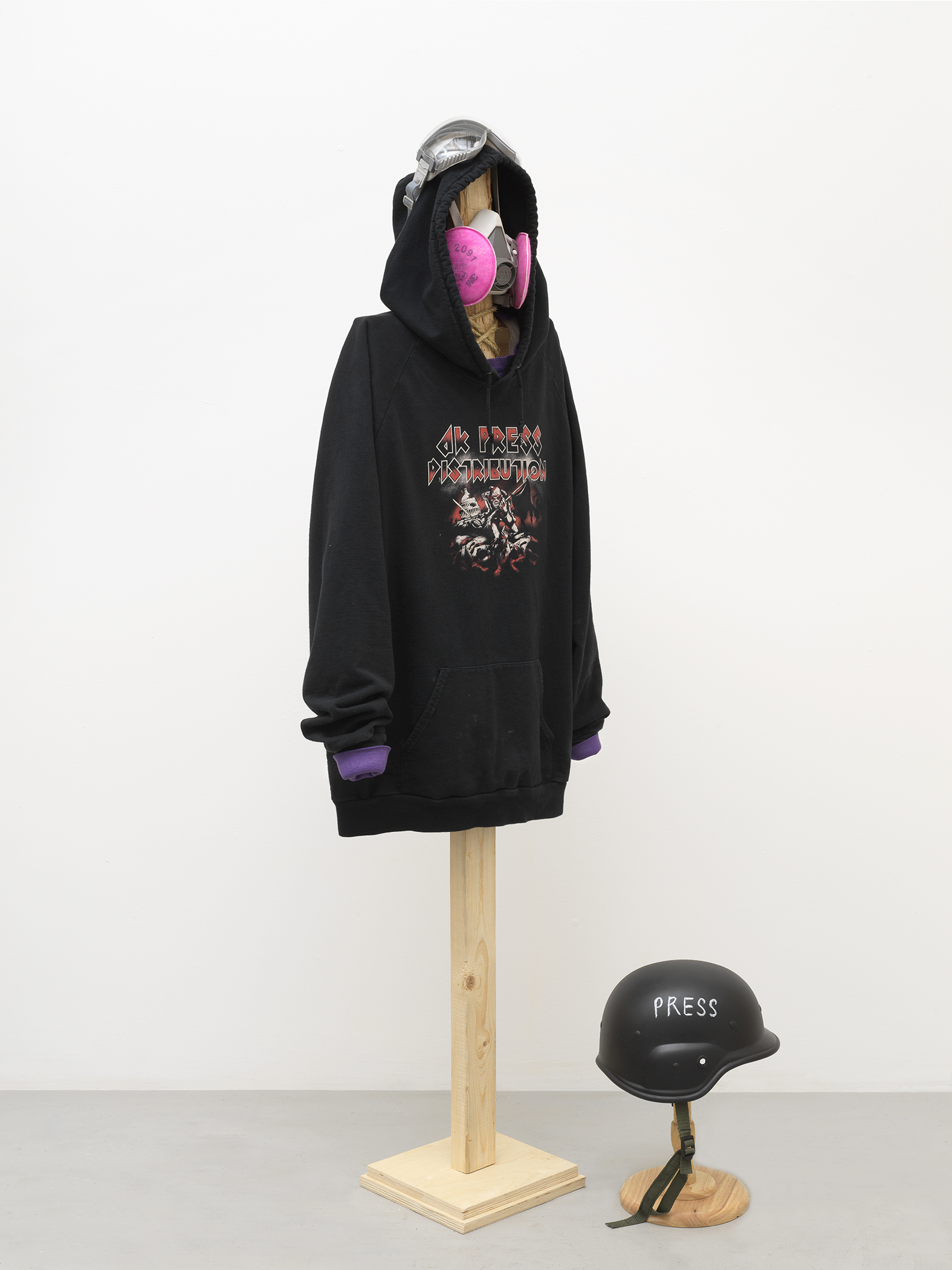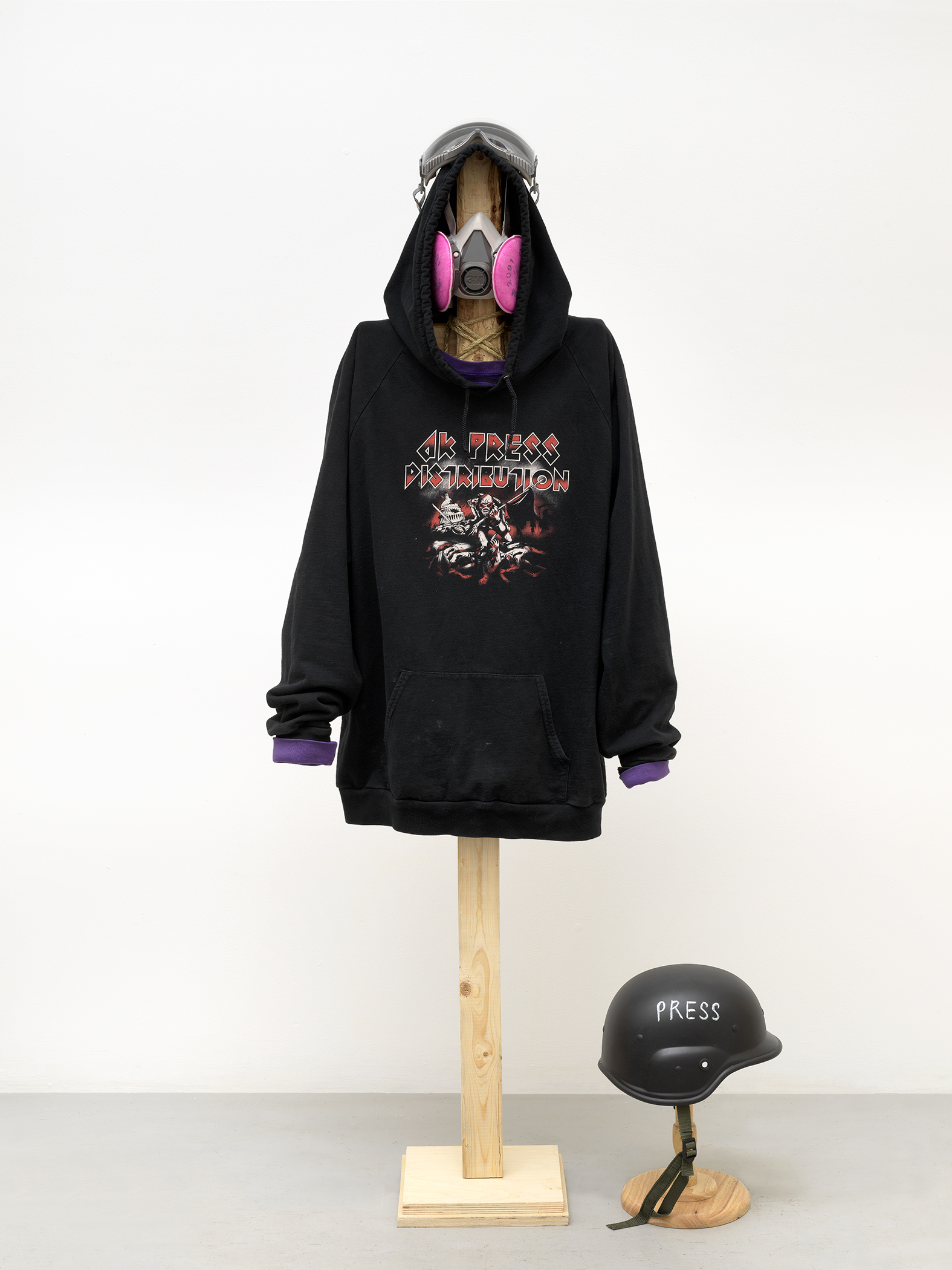 These photographs, which document in sculptural terms, components of protest uniforms belonging to protagonists John Turano and Alexei Wood,